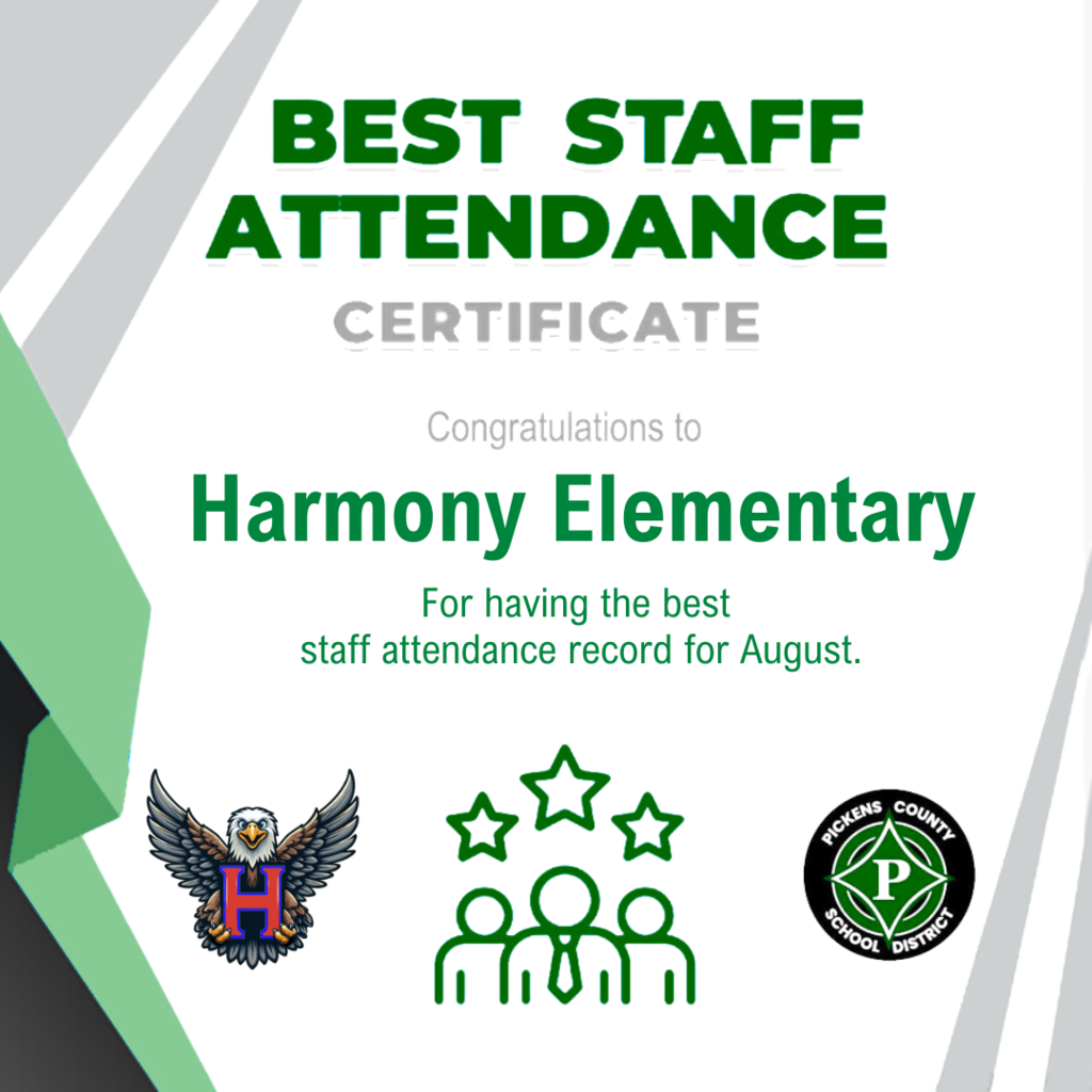 Congratulations to Harmony Elementary for not only having the best student attendance for May, but also the best staff attendance!